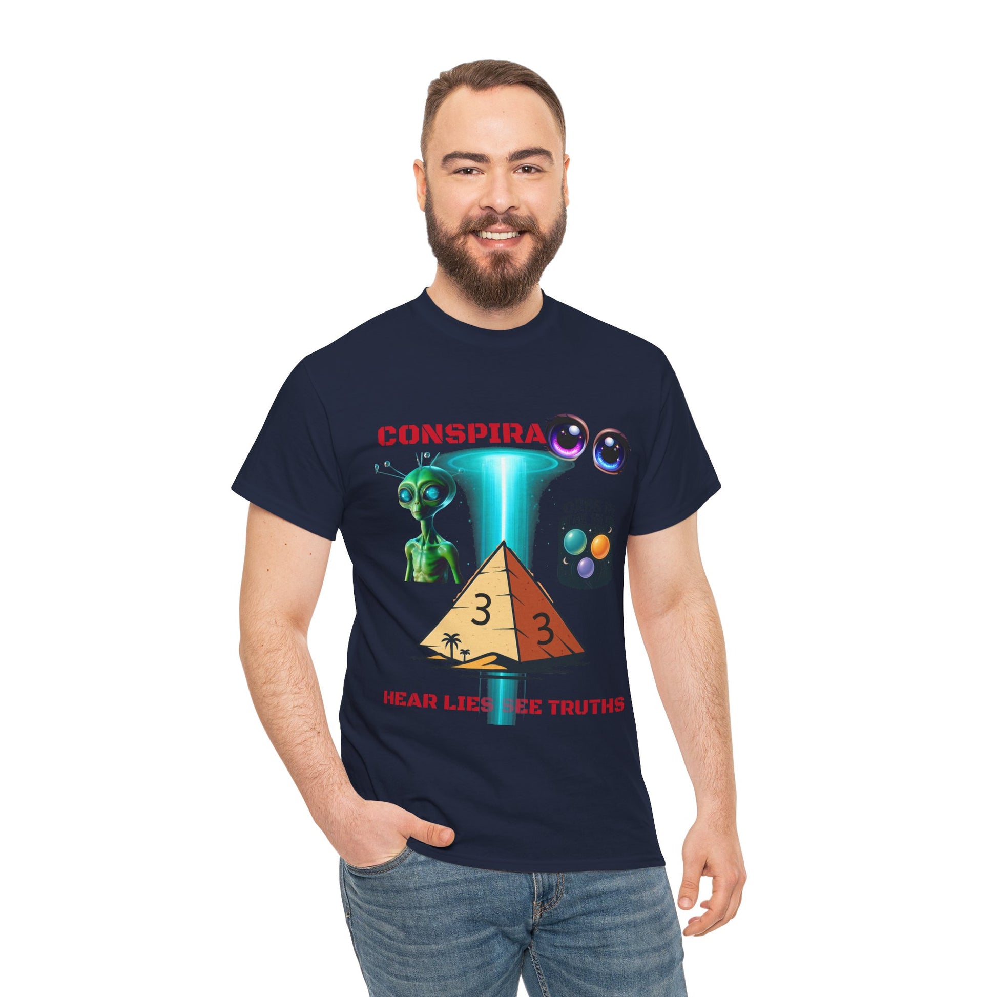 Unisex Heavy Cotton Tee - Conspiracy Theories Graphic Shirt, Casual Gift, Everyday Wear, Cool Tees for Men and Women, Unique Gift Idea